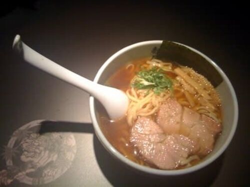 港区六本木4≠P2≠U 2011/09/22 開店日に「つけ麺」を食べて以来、どうしてもこの店にもう一度行きたかった。そんなチャンスは自分で作るもの。初回訪問時にお店の人が、薦めていた「らー麺」800 yenを注文した。 具は、シナチク、青葱、ノリ×1枚、チャーシ…
