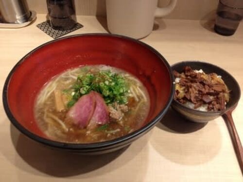 この日は、赤坂方面で会議があったので、早速赤坂の新店を訪問した。(会議の場所からは、地下鉄一駅分の距離はあるな。)初めての店なので、基本の「醤油ラーメン」850 yenを注文した。あ、それから、「ミニ牛スジ丼」100 yenも注文してしまった。 具は、シ…
