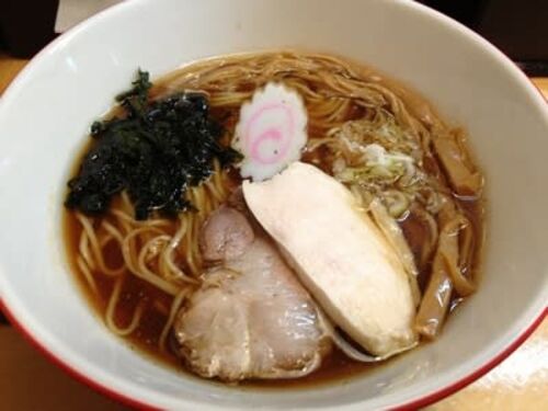 この日は、うちの奥さんがエレクトーンを披露するというので、経堂へ出向いた。そんな帰りは長男とラーメン。最近買ったラーメン情報満載のムックにてこの店の情報を入手。休日の昼過ぎなのに、既に満席。入った途端に魚介の香りが漂う素晴らしい店。「重ね…