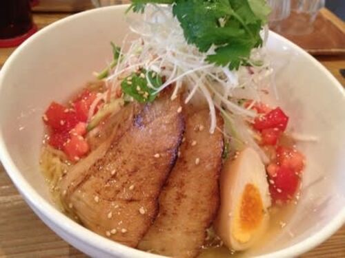 2013/7/29 この日は、赤坂方面で会議。そんな時には、やっぱりラーメンでしょうということで、博多豚骨の名店「秀」を再訪した。再訪の理由は限定30食のメニューを発見したから。早速その「香草柚子塩涼麺」 850 yenを注文した。 具は、キュウリ、紫玉葱、…