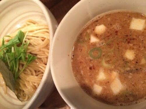 中央区日本橋室町1≠W≠V 2016/12/29 この日は、人形町で買い物。その前の腹ごしらえは当然のラーメン。前から恋い焦がれていた日本橋三越近くにあるこの店を漸く訪問することができた。「濃い出汁つけそば」850 yenを注文した。 具は、シナチク、青葱、玉葱…
