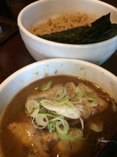 この日は、郊外で野暮用。お昼ご飯には、気分転換のため当然のラーメン。新宿御苑前駅から四谷三丁目駅にかけてはまだまだ未踏の店が多く、その中の一つのこの店を訪問することにした。もう暑いのでつけ麺に逃げることに。「魚介豚骨つけ麺ひやもり」並1,000 yenを注文した。