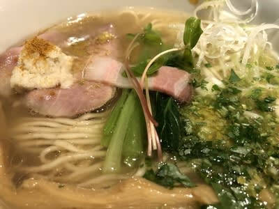 並ぶことを覚悟、だから休日にしか行けないラーメン屋さんに行きたくて、新宿御苑前の有名店、「金色不如帰」を1年振りに訪問。ここの「限定麺」にはいつも振られっぱなしだったけど、今回初挑戦。「和風海の塩そば」1,000 yen。